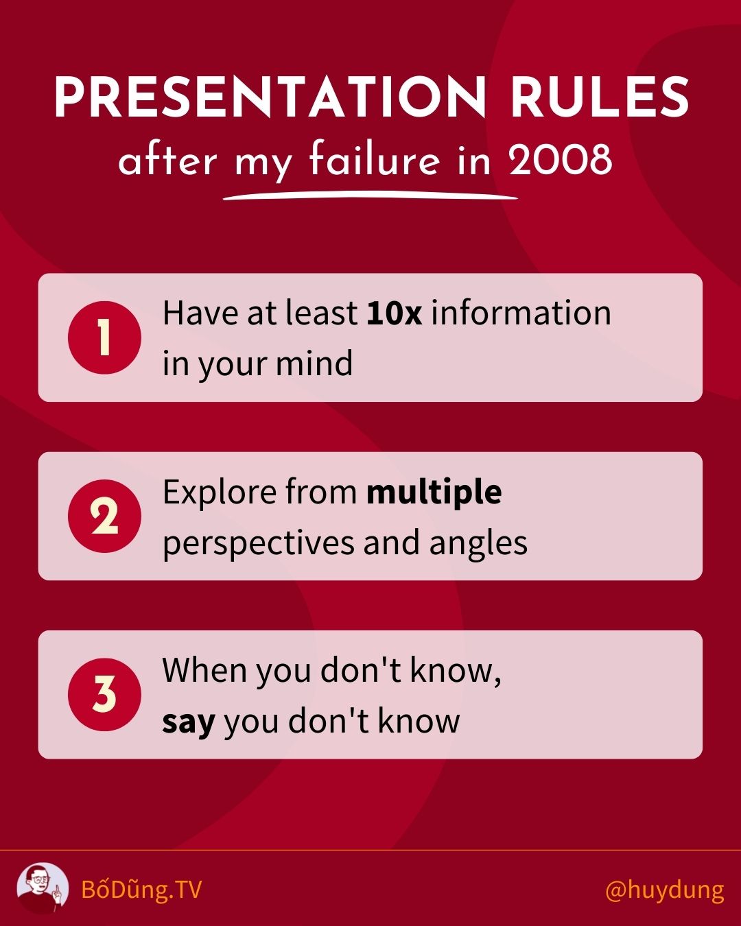 Keep these rules and mind while preparing your presentation. So you got all the benefits without needing to make a mistake first :)