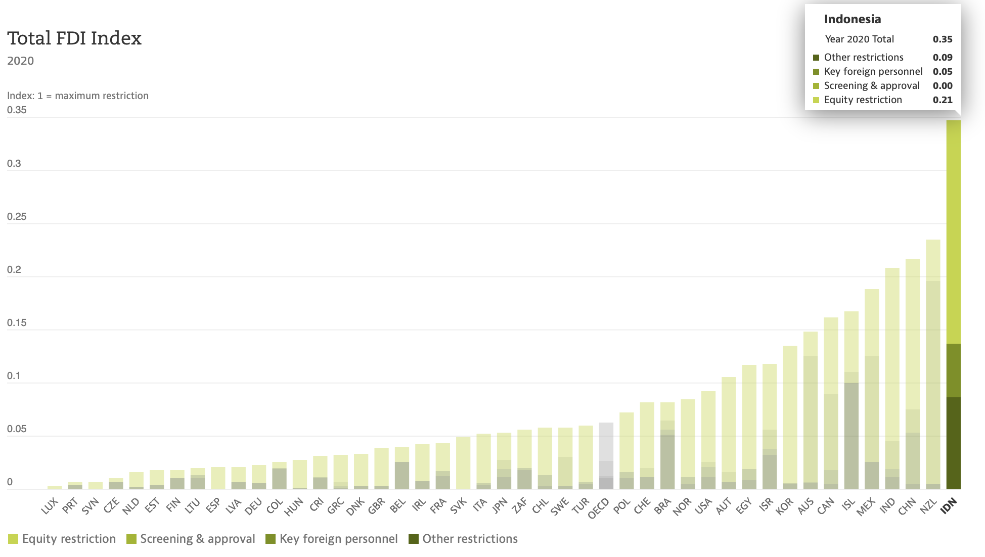 OECD's FDI Restrictiveness Report (2020) Ranks Indonesia as the Most Restrictive out of 69 Nations