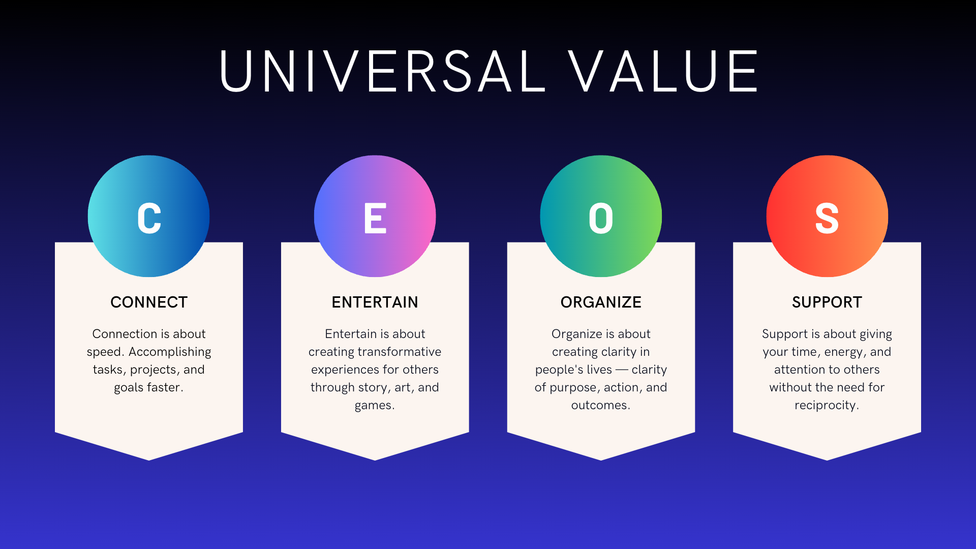 CEOS. The Universal Value framework. Use it and watch what happens.