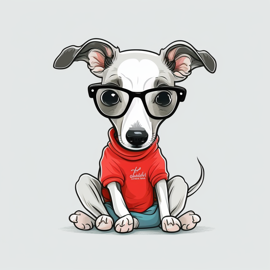 Whippet <action, clothes>, flat 2d, <art style>, clean, simple, white background, professional tshirt design vector